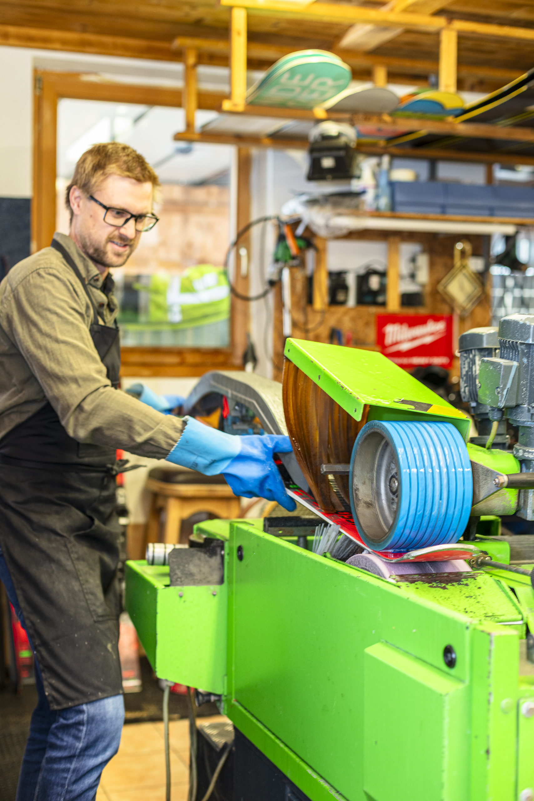 Der Ski- und Snowboardservice erfolgt mit Qualitätsschleifmaschinen von Wintersteiger, um einen präzisen Schliff und ein sauberes Ergebnis zu gewährleisten. So kannst du dich darauf verlassen, dass dein Material optimal gepflegt ist und seine volle Leistung entfalten kann.